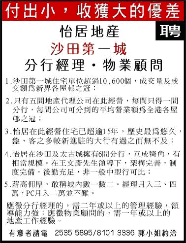 近日,為了聘請一間重點分行的主管,我又被逼要親自執筆撰寫了下述招聘廣告: