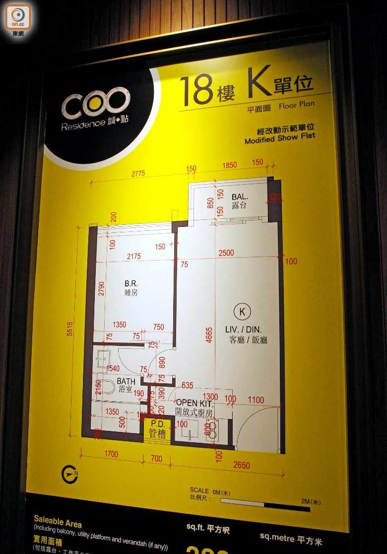 該項目提供204伙,實用面積介乎200餘至不足400方呎,戶型由開放式至兩房。