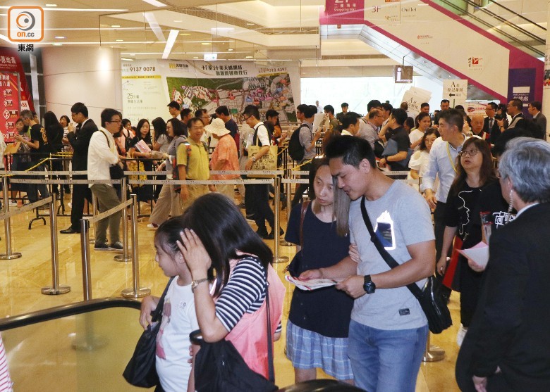現場所見,雖然「瑪娃」逼近香港,一號風球懸掛,天氣變得不穩,早上亦不時下雨,但無損買家揀樓熱情,8時許陸續有準買家到場等候報到登記,幾近擠滿了售樓處外的等候區,場面熱鬧。A組買家報到登記後,將抽籤決定揀樓次序,然後揀樓。