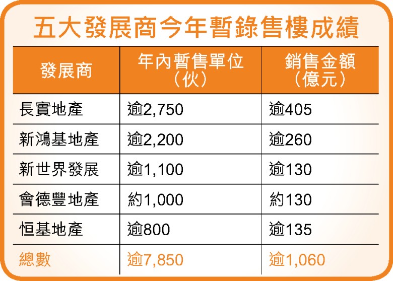 5大發展商今年售逾7850伙 勁吸千億勢破頂