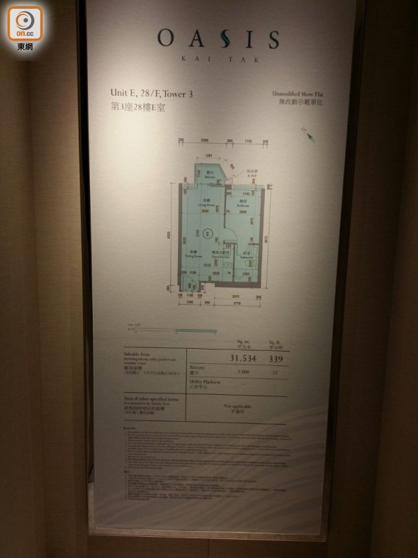 【多圖】OASIS KAI TAK一房交樓標準示位曝光 Published 2017-09-06 · Updated 2019-04-11 OASISKAITAK.jpegOASISKAITAK_2.jpegOASISKAITAK_3.jpegOASISKAITAK_4.jpegOASISKAITAK_5.jpegOASISKAITAK_6.jpeg 會德豐地產啟德沐寧街10號OASIS KAI TAK周三(6日)開放兩個示範單位予傳媒參觀,其中,第3座28樓E室交樓標準示範單位,實用面積339方呎,屬一房間隔。
