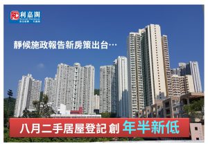 八月二手居屋登記僅306宗 創1年半新低 觀望房策出台 料本月交投續低位橫行