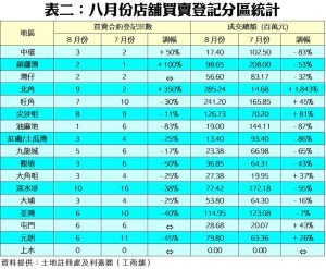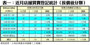 八月店舖登記跌至120宗 11個月最少 本月上旬交投不俗 全月量值冀回勇