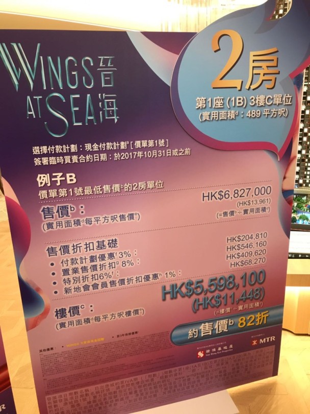 新鴻基地產(00016)旗下將軍澳日出康城晉海開價,折實平均呎價12,788元,貴絕日出康城一帶二手屋苑,首批208伙價單市值近16億元。