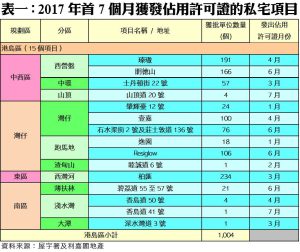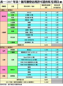 資料顯示,七月份本港共有7個私宅項目正式落成。當中規模較大的項目為屯門「滿名山」,項目涉及1,100伙;其次為啟德「啟德1號(II)」,涉及單位伙數624個;至於其餘項目包括元朗PARK YOHO發展項目(2C期)(538伙)、旺角洗衣街88號項目(128伙)、九肚山「澐瀚」(69伙)、山頂道20號項目(4伙)及淺水灣香島道41號項目(1伙)亦於期內竣工(詳見表一)。