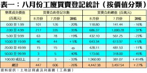 工廈八月買賣447宗 連升5個月後首回氣