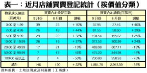 九月店舖買賣錄146宗 近3個月新高 高價登記萎縮 拖累金額逆市挫36%