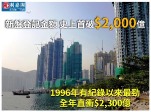 首十月一手登記金額 史上首破二千億元 96年有紀錄以來新高 全年直衝2,300億