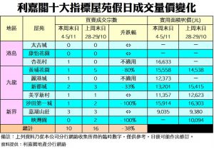 《利嘉閣十大指標屋苑假日二手實況》 二手交投保持平穩 年內難見突破 十大屋苑周末錄10宗買賣 按周跌6宗