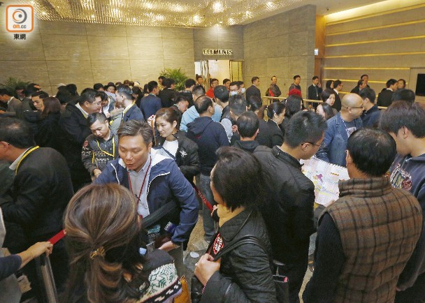 新鴻基地產(00016)西南九龍匯璽II周六(25日)首度開售321伙,繼大手客揀樓後,散客時段下午展開,2時半起開始報到登記。現場所見,大批準買家到場等候報到,並現排隊人龍,不但擠滿登記區,更延至下層等候區,氣氛遠較大手客時段熱鬧。