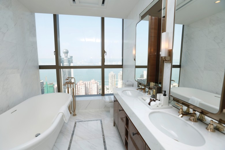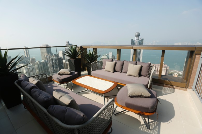 會德豐地產旗下西營盤KENSINGTON HILL,今日開放全新35樓A室複式連天台特色大宅示範單位予傳媒參觀,實用面積2,277方呎,天台面積247方呎,間隔三房雙套連書房。