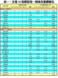 至於,港島區8個指標屋苑上周僅錄17宗交投,按周減少47%,當中龍頭屋苑太古城保持旺勢,再錄12宗買賣,按周持平;不過,杏花村只錄得1宗買賣,交投按周大減80%;康怡花園則錄得3宗成交,較前周的4宗減少25%。另外,在全港50個指標屋苑當中,上周共有14個屋苑錄得「零成交」,較前周的10個增加40%,當中港島區佔4個,九龍及新界區則各佔5個(詳見表一)。