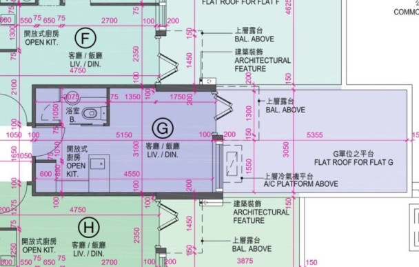 樓書顯示,項目最細面積單位為1樓G室開放式連平台戶,單位實用面積187方呎,平台面積則179方呎,即是單位內籠與戶外空間幾近相同。