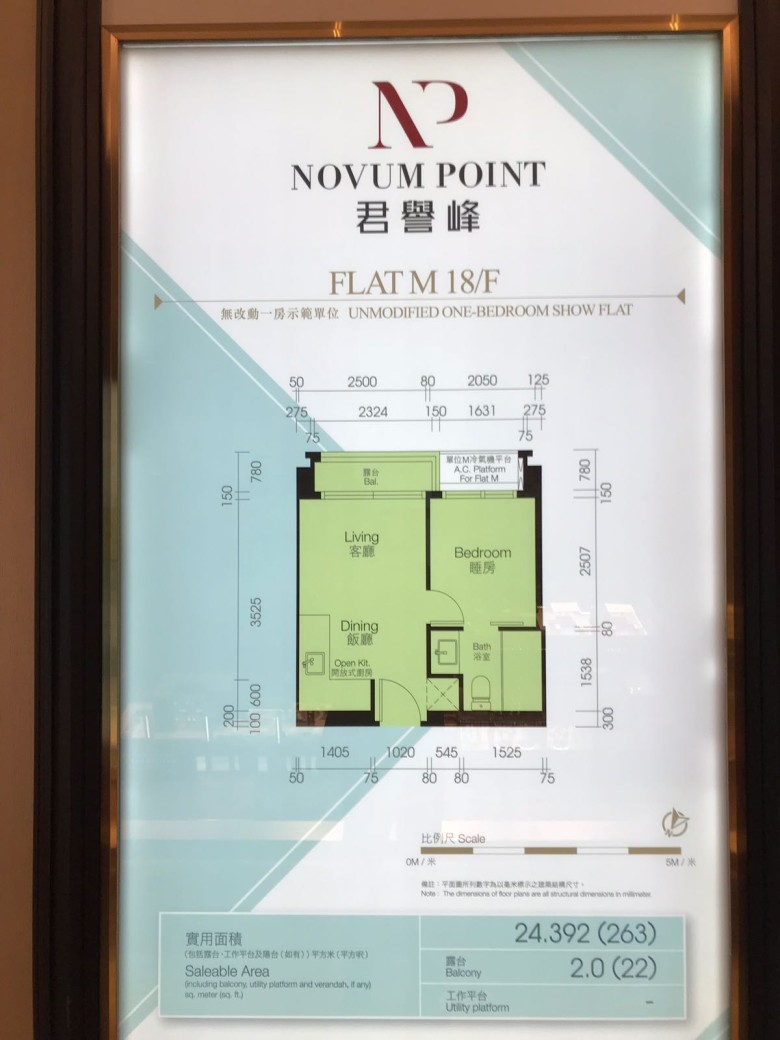 恒基地產(00012)旗下北角君譽峰,周五(19日)首度開放示範單位予傳媒參觀,其中一房交樓標準示範單位,參照18樓M室搭建,實用面積263方呎,大廳連接面積22方呎露台。