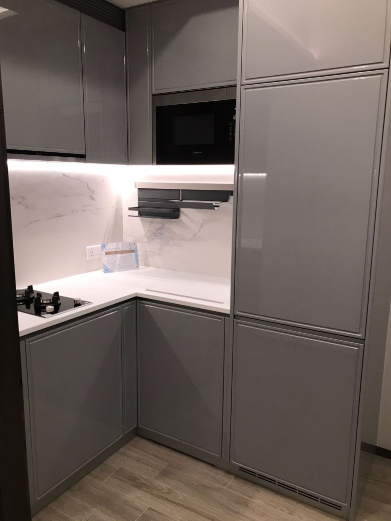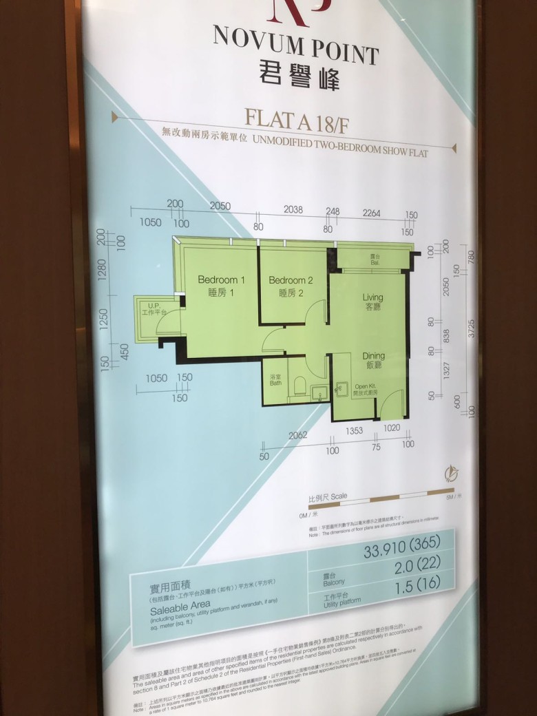 至於兩房示範單位參照18樓A室搭建,實用面積365方呎,大廳連接面積面積22方呎露台,睡房則設面積16方呎工作平台。上述兩伙均採用開放式廚房設計。