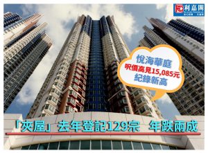 去年「夾屋」登記僅129宗 按年下跌19% 悅海華庭高層呎價逾萬五 有紀錄最高
