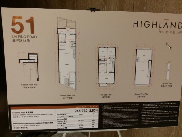 另一示範單位為59號洋房,屬交樓標準單位,實用面積2,640方呎,設有969方呎平台、520方呎花園及73方呎天台。