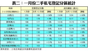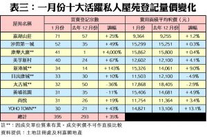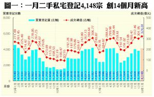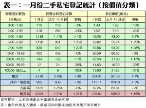 二手私宅量價齊升 一月4,148宗 14月最多 登記金額324億元 63月新高 均價781萬