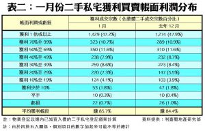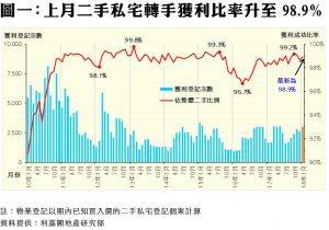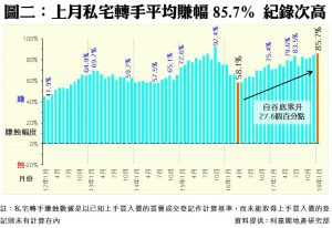 首月私宅轉手獲利比率98.9% 又見回升 平均每宗賺幅85.7% 創27個月新高