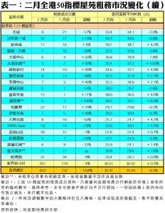 二月份50屋苑租賃錄653宗 逾12年來單月最少
