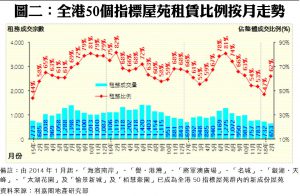 利嘉閣地產研究部主管陳海潮表示,在二月份農曆新年的傳統租務淡季下,租賃交投偏靜,惟業主仍然看好樓市及樓價繼續上升,認為未來租務仍有一定需求,故於季節性淡市亦無明顯減租行動,支持租金橫行企穩,僅出現極輕微跌幅。綜合利嘉閣地產研究部數據所得,2018年二月份全港50個指標屋苑的加權平均實用呎租報35.41元,較一月份歷史新高的35.44元微跌0.1%,自去年十月起連升四個月後首度回落。