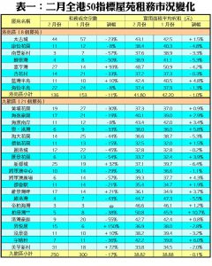 二月份50指標屋苑租賃交投量錄得653宗,較一月份的732宗減少近11%,連減兩個月,更屬2005年十二月份以後的146個月(即逾12年)單月新低。由於農曆新年傳統淡市效應,上月指標屋苑買賣成交量按月大減,而租賃交投減幅仍相對輕微,令上月50指標屋苑租賃佔整體成交比例升至約62.1%,按月升約15.2個百分點,創近四個月新高。