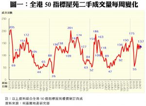 利嘉閣地產董事陳大偉指出,最近一手市場氣氛轉靜,未有全新項目推出,購買力隨即回流至二手市場,刺激上周50指標屋苑交投造好。綜合利嘉閣地產分行數據所得,全港50個指標屋苑於上周(9/4—15/4)累錄137宗買賣個案,較前周(2/4—8/4)的127宗回升8%,於近周表現算是反覆靠穩。