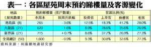 市況平靜 普遍屋苑盤源亮紅燈 50指標屋苑周末預約睇樓量微跌0.9%