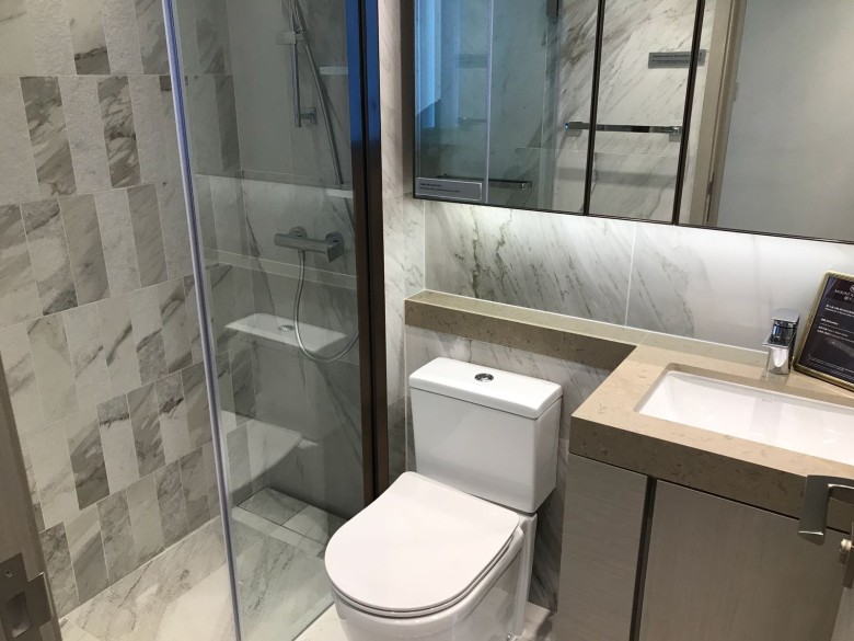 新鴻基地產(00016)旗下屯門御半山,今日(5月2日)首度開放示範單位予傳媒參觀,單位參照第1A座18樓J室搭建,包括連裝修及交樓標準示範單位,實用面積455方呎,間隔兩房,廚房採用開放式設計。