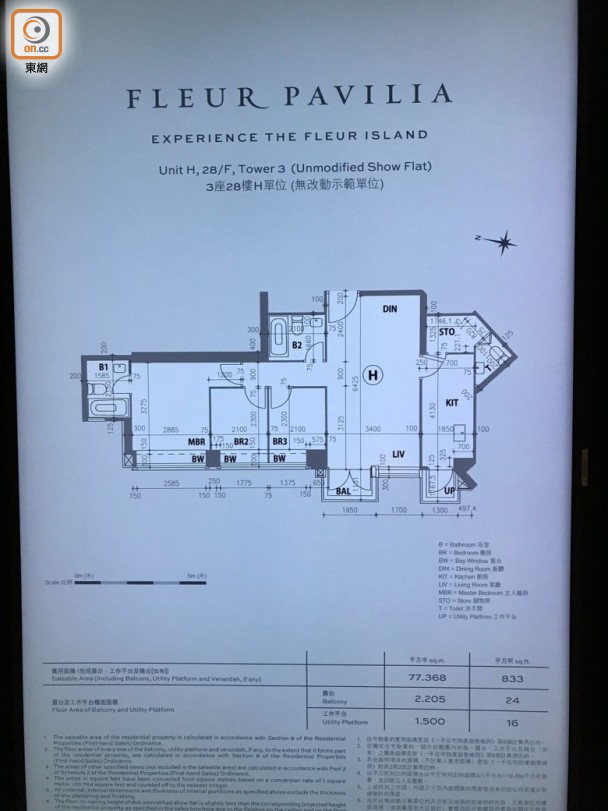 新世界發展(00017)旗下北角柏蔚山今日(28日)首度安排傳媒參觀示範單位,其中參照第3座28樓H室搭建的三房一套、儲物房連洗手間交樓標準示範單位,實用面積833方呎,大廳連接面積24方呎露台,廚房則設面積16方呎工作平台。