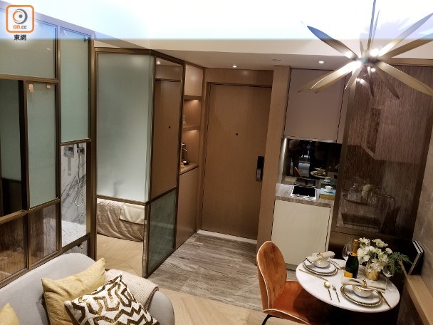 至於最後1個清水房示範單位以1座28樓E室為藍本搭建,實用面積311方呎,屬一房連儲物室間隔,該儲物室連接睡房,料可作衣帽間之用。