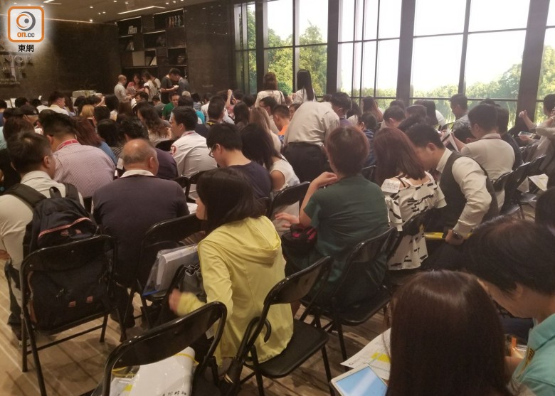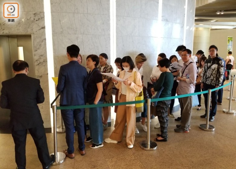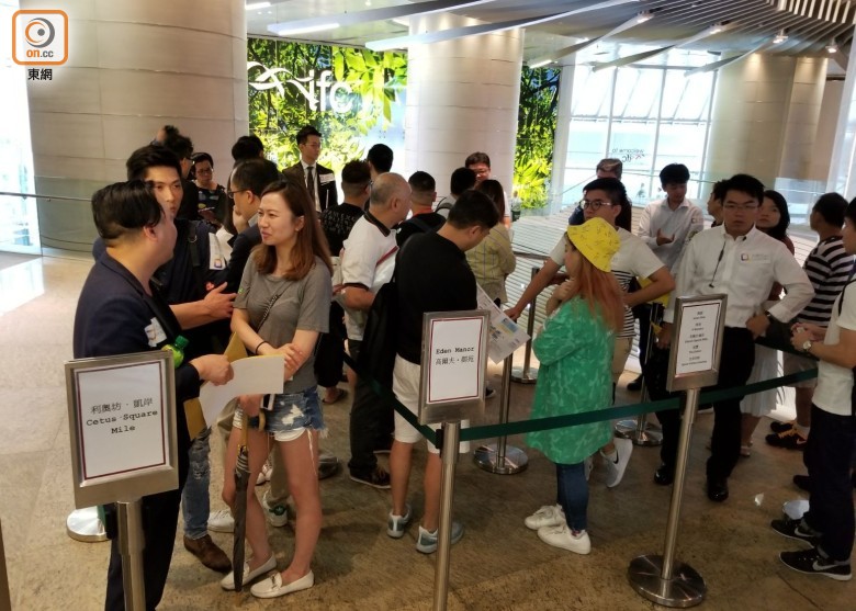 樓價的登記人報到時段於早上10時展開,現場所見,有大批準買家排隊等候報到,場面熱鬧。