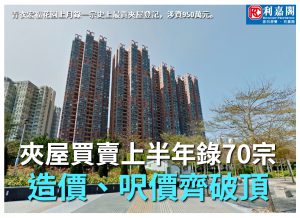 上半年夾屋買賣登記70宗 總值4.91億元 造價飛升 成交價、呎價齊破歷史新高