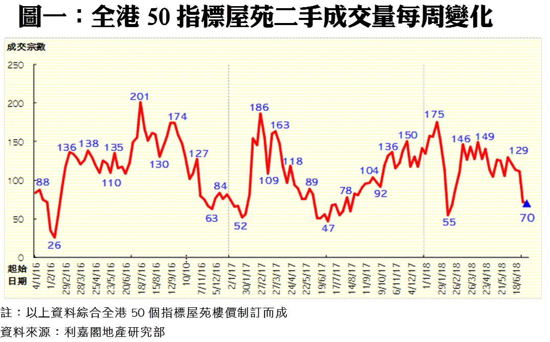 《利嘉閣十大指標屋苑假日二手實況》 一手搶攻 買家心理受壓 入市轉趨謹慎 十大屋苑周末僅錄4宗買賣 按周再跌33% 研究報告 2018-07-16 by Chan Derek · Published 2018-07-16