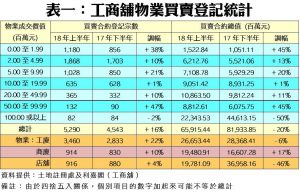 根據土地註冊處資料顯示,截至6月30日為止的上半年,全港共錄得5,290宗工廈、商廈及店舖物業買賣登記,涉及登記金額達659.15億元,較去年下半年的4,543宗及819.34億元分別上升16%及回落20%;若按年同比,則分別升19%及跌16%;量升主要受惠工廈拆售及商廈新項目推出,而登記金額回落主因是對上的半年錄得較多巨額登記所致,主要是領展出售多個商場。