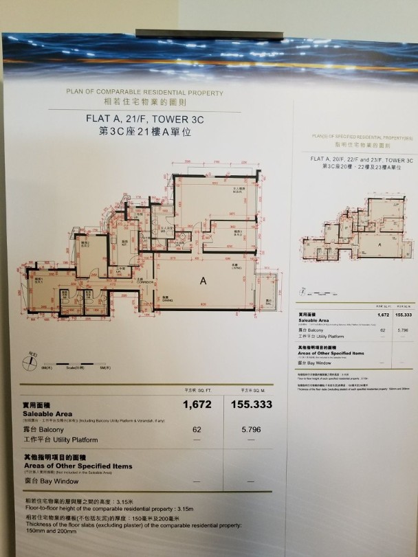 該盤周四開放3C座21樓A室示範單位,實用面積1,672方呎,大廳逾400方呎,而主人房逾260方呎,採四房雙套間隔,客廳望向海星灣。