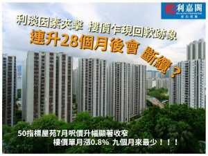 50指標屋苑上月呎價升幅顯著收窄 樓價單月漲0.8% 九個月來最少