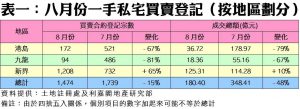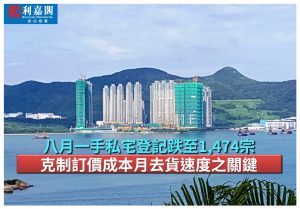 八月一手私宅登記1,474宗 按月跌15% 克制訂價成本月去貨速度之關鍵