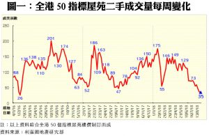 利嘉閣地產董事陳大偉表示,受中美貿易戰陰霾影響,港股近月表現持續走弱,影響入市及投資氣氛,加上本月下旬美國及本港加息預期升溫,準買家態度觀望,導致二手交投非常冷清。綜合利嘉閣地產分行數據所得,全港50個指標屋苑於上周(3/9—9/9)僅錄35宗買賣個案,較前周(27/8—2/9)的36宗再減3%,連跌三周,並續創2016年二月中以來的134周(即逾兩年半)新低,而50個指標屋苑之中,期內有多達六成屋苑錄得「零成交」。