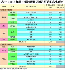 按地區劃分,今年上半年以新界區的落成私宅單位數量最多,該區共有18個項目落成,涉及單位總數6,828伙,佔同期整體私宅落成量高達74.5%;港島區有12個項目落成,涉及單位總數1,636伙,佔同期整體約17.8%。至於九龍區則只有8個項目落成,涉及單位總數704伙,僅佔整體約7.7%。