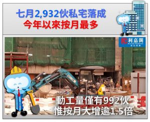 七月份2,932伙落成 按月勁飆近1.8倍 首七個月9,168伙竣工 佔全年預測逾半
