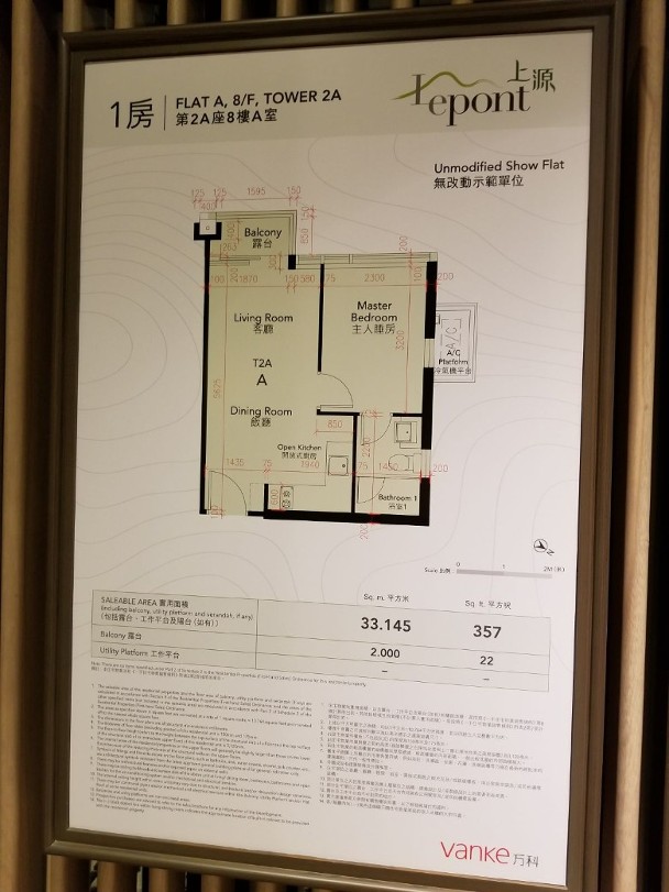 此外,該盤第2A座8樓A室,面積357方呎,屬一房間隔,採開放式廚房設計。