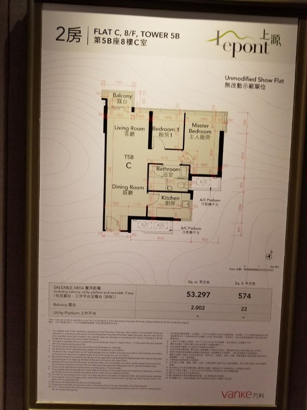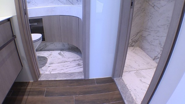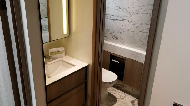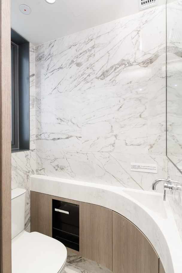 萬科置業(香港)旗下屯門上源周四(20日)開放3個交樓標準單位予傳媒參觀。其中第5B座8樓C室屬兩房戶,面積574方呎。浴室尤為特別,參考日式「乾濕分離」的設計,各有獨立空間。