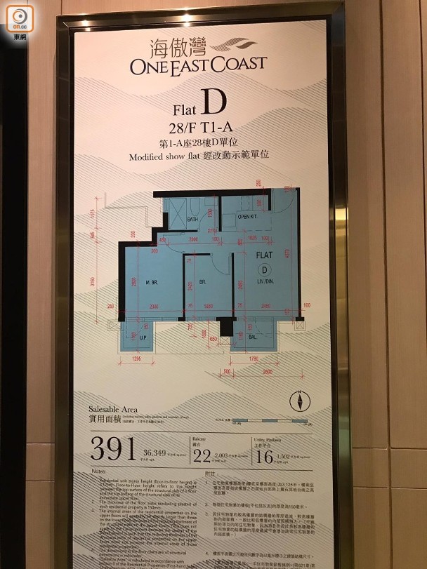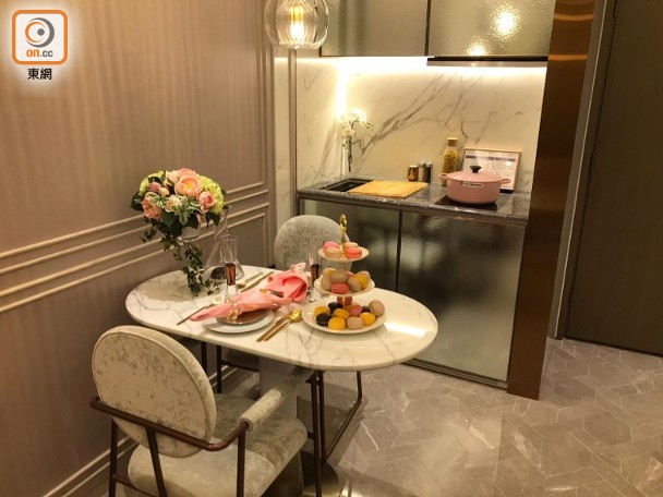 另外,項目同時開放參照第1-A座28樓D室打造的兩房戶示範單位,該單位實用面積391方呎,廚房均以開放式設計,大廳設有面積22方呎露台,睡房則連接16方呎工作平台。