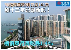 50指標屋苑九月呎價15,024元 月跌1.4% 樓價連跌2個月 交投量創十三年紀錄新低