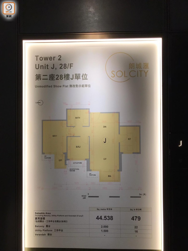 發展商同時打造兩個交樓標準示範單位,其中根據2座28樓J室而建的兩房戶,實用面積479方呎,長方形大廳亦設面積22方呎露台,睡房連接面積16方呎工作平台。