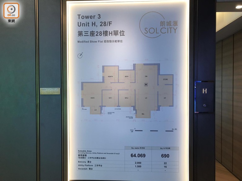 新界西北區多個新盤快將出籠。華懋集團旗下元朗朗城滙首度安排傳媒參觀示範單位,其中參照3座28樓H室搭建的連裝修原則三房戶,實用面積690方呎,大廳連接面積22方呎露台,主人套房則設面積16方呎工作平台。