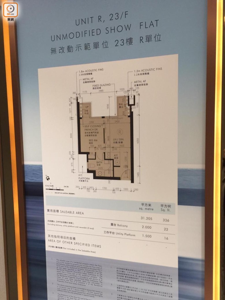 莊士中國(00298)旗下屯門弦海今日(18日)首度開放示範單位予傳媒參觀,單位參照23樓R室搭建,實用面積336方呎,一房間隔,客廳連接22方呎露台,睡房則連接16方呎工作平台。