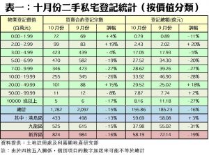 十月二手私宅登記1,782宗 創31個月新低 每宗均價近875萬元 連跌兩月共4.5%