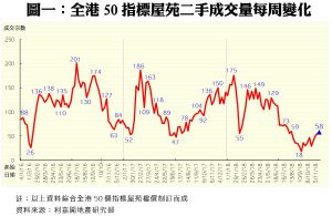 利嘉閣地產董事陳大偉表示,二手業主減價情況漸增,當中以中細價上車屋苑減幅較大,吸引部分用家入市承接,帶動上周50指標屋苑二手交投繼續回穩。綜合利嘉閣地產分行數據所得,全港50個指標屋苑於上周(19/11—25/11)共錄58宗買賣個案,較前周(12/11—18/11)的54宗再增加7%,連升四周,並創八月中以後的十四周新高,惟實際上仍處於低位徘徊。